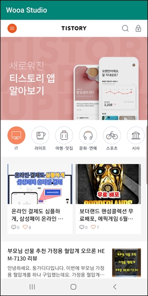 티스토리 메인화면이 정상적으로 출력됨을 확인 할 수 있습니다.,